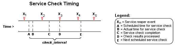 Il est à noter que l'ordonnancement et l'exécution des contrôles de service sont faits "au mieux". Les contrôles de service individuels sont considérés comme étant des évènements de basse priorité dans Nagios, ils peuvent donc être retardés si des évènements de haute priorité doivent être exécutés. Sont par exemple des évènements de haute priorité les rotations de fichier journal, les commandes de contrôle externes, et les évènements de consolidation de service. Qui plus est, les contrôles d'hôtes ralentissent l'exécution et le traitement des contrôles de services.